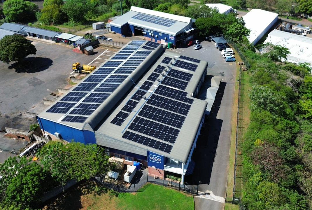 100kw Hybrid Solar solution paired with 1 x 80kwh Lithium Ion battery. This is a solar solution sized for savings on electricity as well as a battery backup supply for load shedding requirements. This 24–hour business has no down time.